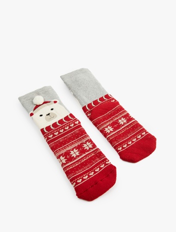 Kadın Pamuklu Yılbaşı Temalı Soket Havlu Çorap