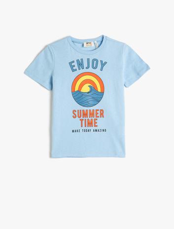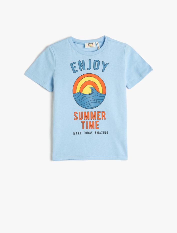 Baskılı Tişört Bisiklet Yaka Kısa Kollu Pamuklu
