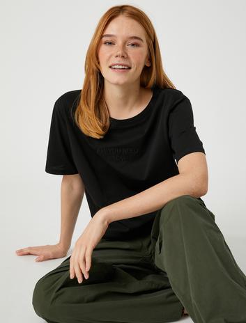 Yazı İşlemeli Tişört Bisiklet Yaka Sepete Ekle