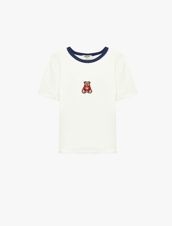 Ayıcık Nakışlı Bisiklet Yaka Pamuklu Tişört Sepete Ekle