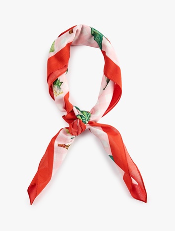Kiraz Desenli Saten Kare Fular Sepete Ekle