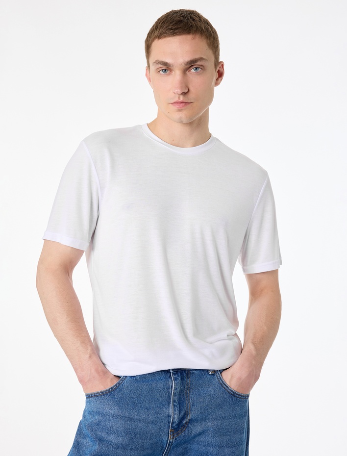 Regular Fit Viskon Karışımlı Kısa Kollu Bisiklet Yaka Basic Tişört