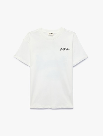 Pamuklu Kısa Kollu Bisiklet Yaka Baskılı Tişört Sepete Ekle