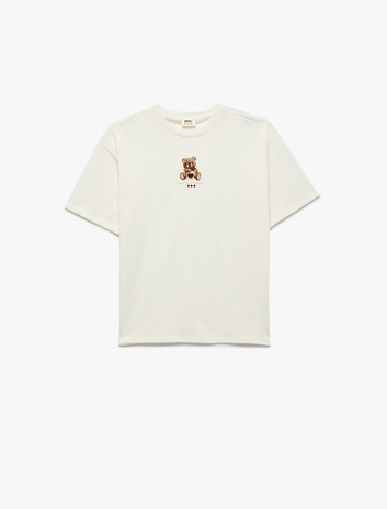 Pamuklu Ayıcık Nakış Detaylı Kısa Kollu Bisiklet Yaka Tişört Sepete Ekle