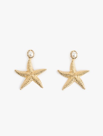 İnci Detaylı Sallantılı Büyük Boy Deniz Yıldızı Küpe Sepete Ekle