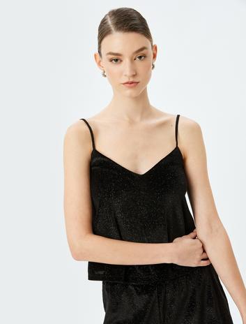 Parıltılı İnce Askılı Pijama Üstü