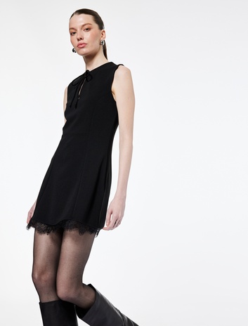 Kolsuz Bisiklet Yaka Bağlama Detaylı Slim Fit Dantel Detaylı Mini Elbise