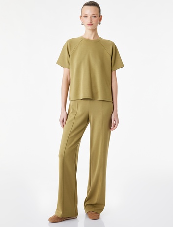 Modal Kumaş Geniş Paça Nervürlü Pantolon