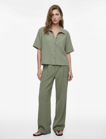 Keten Pamuk Karışımlı Cepli Beli Bağcıklı Pantolon
