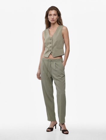 Regular Fit Viskon Karışımlı Cepli Beli Bağcıklı Kumaş Pantolon