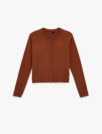 Düğmeli Uzun Kollu Bisiklet Yaka Triko Hırka