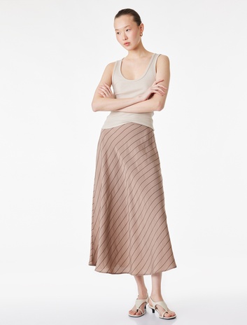 Modal Karışımlı Çizgili Kloş Midi Etek Sepete Ekle