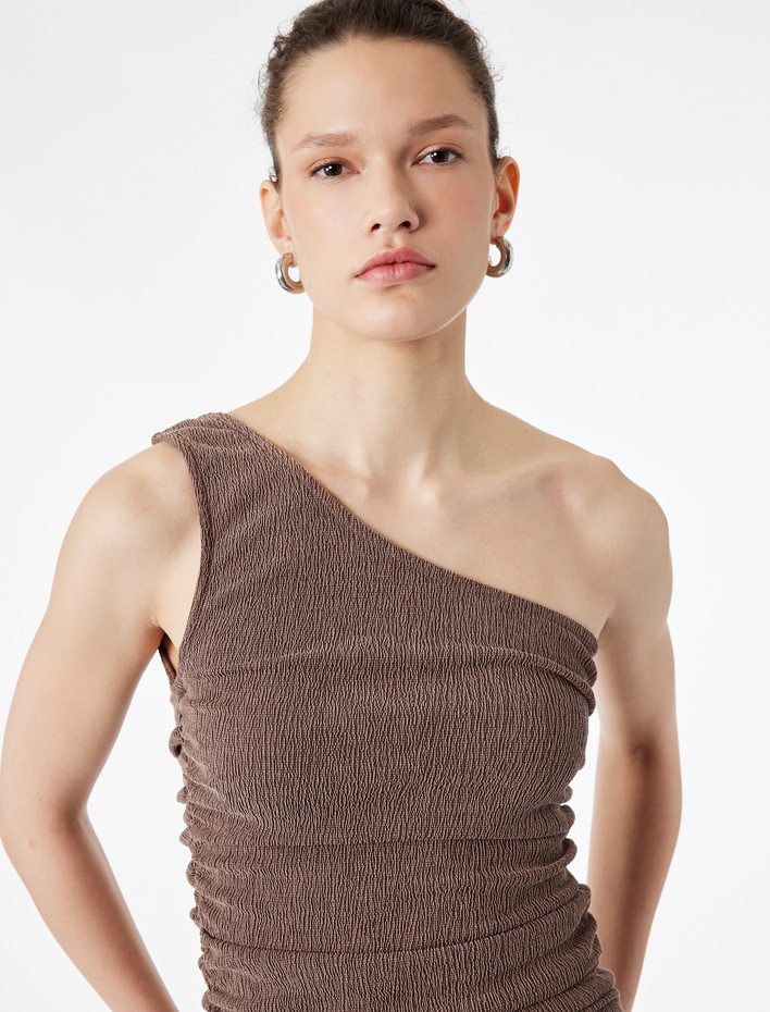 Bürümcük Kumaş Kolsuz Drape Detaylı Tek Omuz Bluz Sepete Ekle