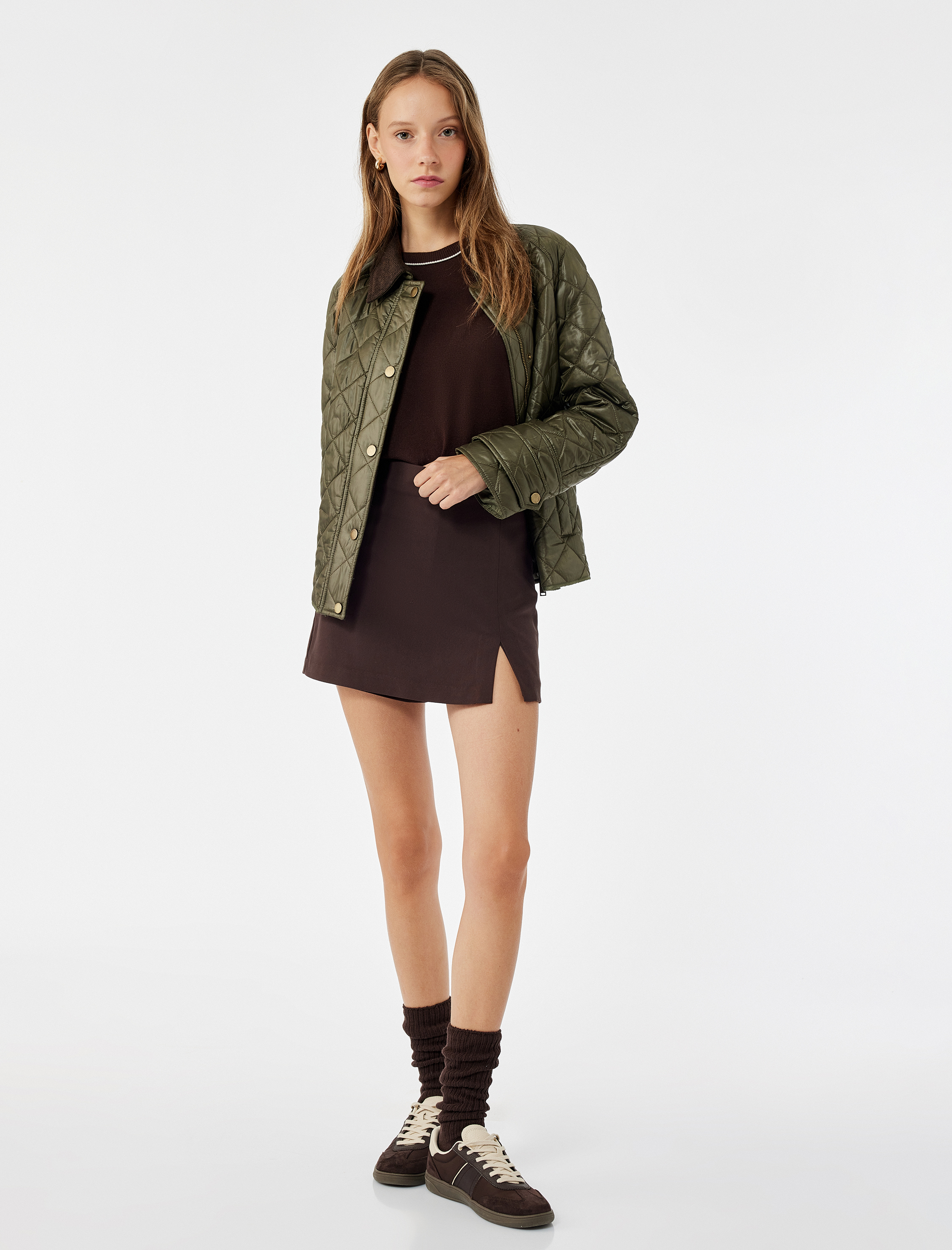 Yırtmaç Detaylı Fermuarlı Standart Bel Viskon Karışımlı Mini Şort Etek