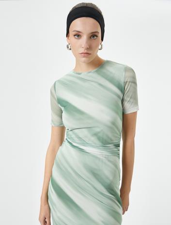 Midi Bodycon Elbise Kısa Kollu Bisiklet Yaka Yırtmaçlı Sepete Ekle