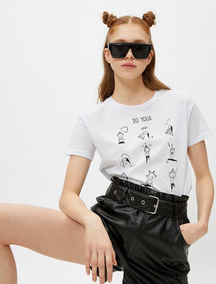 Baskılı Tişört Yoga Temalı Pamuklu Sepete Ekle
