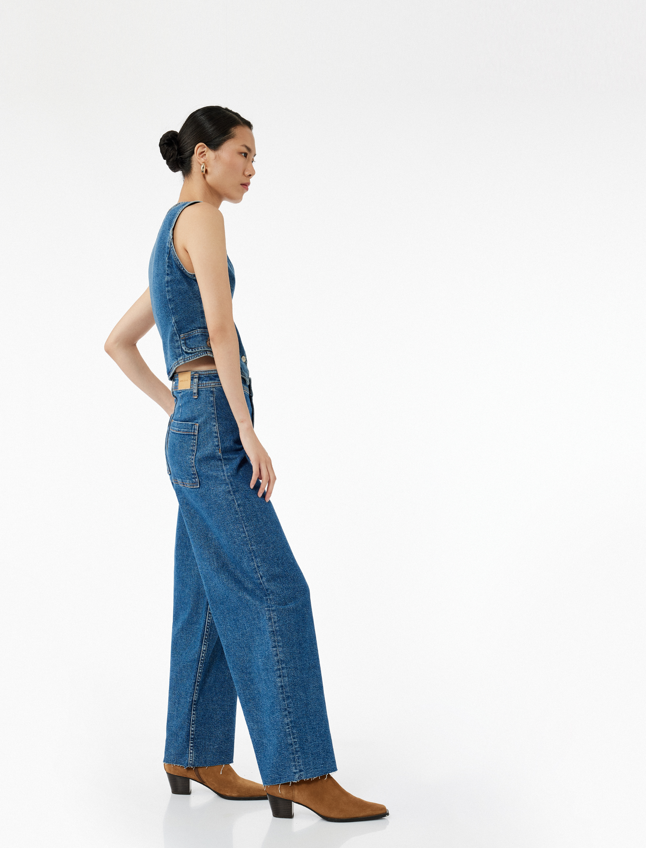 Yüksek Bel Rahat Kesim Geniş Paça Pamuklu Jean Pantolon - Culotte Jeans