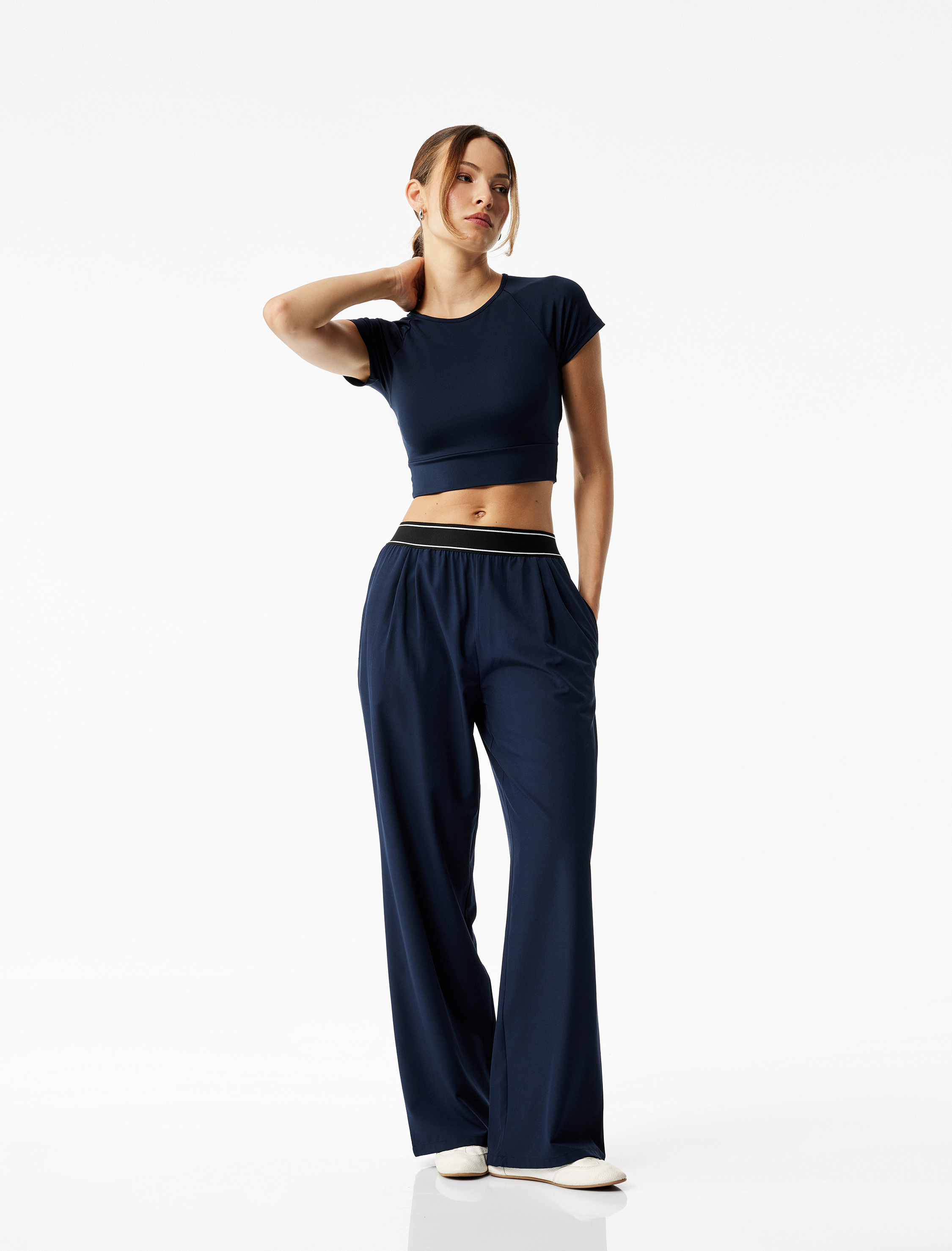 Yüksek Bel Şerit Detaylı Lastikli Spor Eşofman Altı