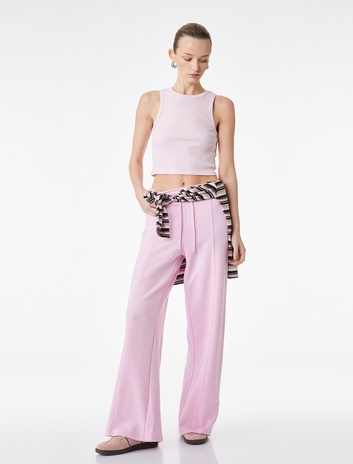 Beli Lastikli Bağlamalı Üç İplik Geniş Paça Nervürlü Eşofman Altı Sepete Ekle