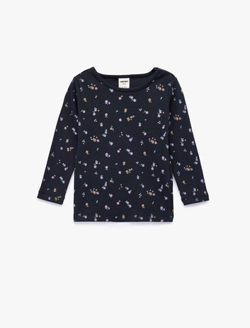 Pamuklu Bisiklet Yaka Çiçekli Uzun Kollu Tişört Sepete Ekle