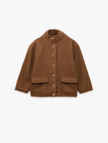 Kız Çocuk Dik Yaka Uzun Kollu Kapaklı Cepli Bürümcük Ceket