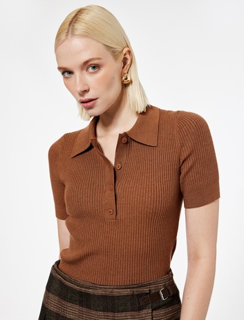 { "id": "8684846011790", "name": "Yarım Düğmeli Kısa Kollu Polo Yaka Triko Kazak", "taxonomy":["CITY FASHION","CITY FASHION","WOMEN","KNITWEAR","SWEATERS"], "currency": "TRY", "unit_price": 1099.99 , "unit_sale_price": 1099.99 , "url": "https://www.koton.com/yarim-dugmeli-kisa-kollu-polo-yaka-triko-kazak-kahve-4089688/", "stock": 75, "color": "KAHVERENGİ", "size": "S", "product_image_url": "https://ktnimg2.mncdn.com/products/2025/10/13/3137375/4303545b-ef23-449f-ba7a-2dae4ea66e39.jpg" }