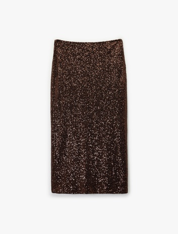 Pullu Payetli Slim Fit Midi Abiye Etek