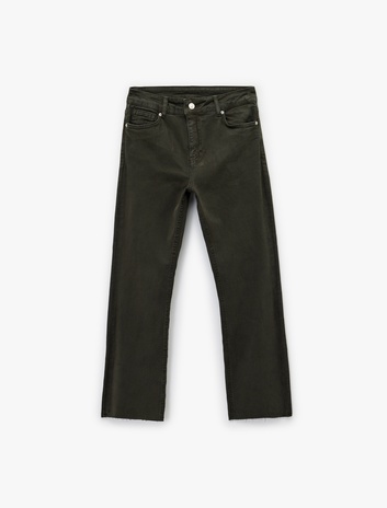 Pamuklu Dar Kalıp Düğmeli Cepli İspanyol Paça Crop Jean Pantolon -  Kick Flare Jeans Sepete Ekle