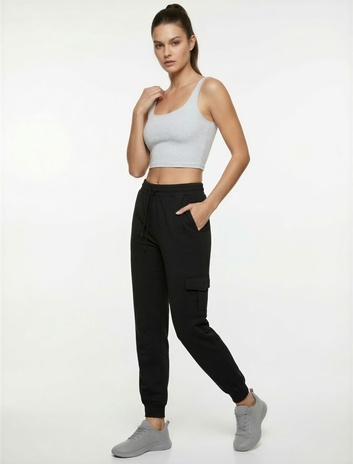 Yüksek Bel Cep Detaylı Rahat Kalıp Spor Jogger Eşofman Altı