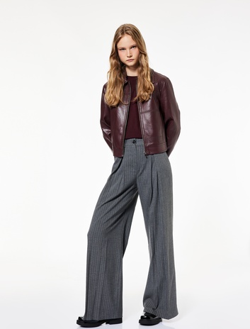 Pamuklu Poplin Kumaş Pileli Geniş Paça Pantolon