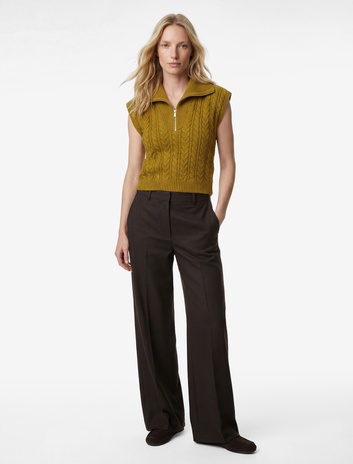 Yarım Fermuarlı Devrik Yaka Saç Örgü Süveter