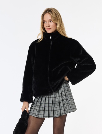 Koton X Sibil Çetinkaya - Suni Kürk Mont Uzun Kollu Dik Yaka Fermuarlı