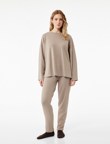 Şardonlu Modal Kumaş Yanları Şerit Detaylı Geniş Paça Eşofman Altı Sepete Ekle