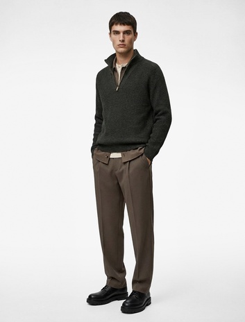 Regular Fit Uzun Kollu Yaka Detaylı Yarım Fermuarlı Triko Kazak