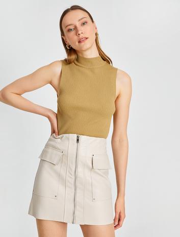 Dik Yaka Dokulu Kolsuz Triko Bluz Sepete Ekle