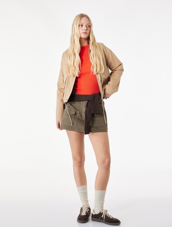 Beli Bağcıklı Fermuarlı Cep Detaylı Scuba Kumaş Spor Şort
