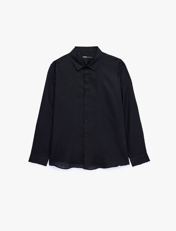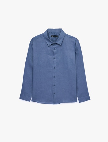Regular Fit Düğmeli Yaka Uzun Kollu Keten Gömlek Sepete Ekle
