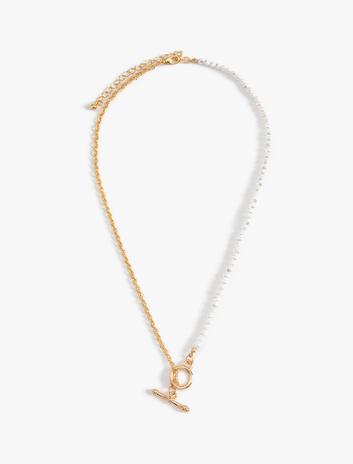 İncili Zincir Kolye Düğüm Detaylı Sepete Ekle