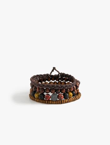 Erkek 4'lü Bileklik Seti Ahşap Boncuklu Çok Renkli