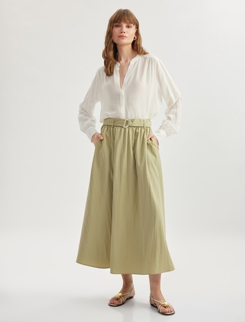 Bol Kalıp Paraşüt Kumaş Kemerli Cepli Uzun Kloş Etek