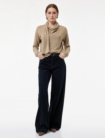 Viskon Karışımlı Yüksek Bel Bağcıklı Geniş Paça Triko Pantolon