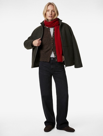 Dik Yaka Uzun Kollu Fermuarlı Kaşe Ceket