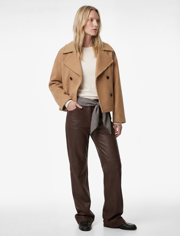 Kısa Kaban Kaşe Düğmeli Cepli Uzun Kollu Kruvaze Sepete Ekle