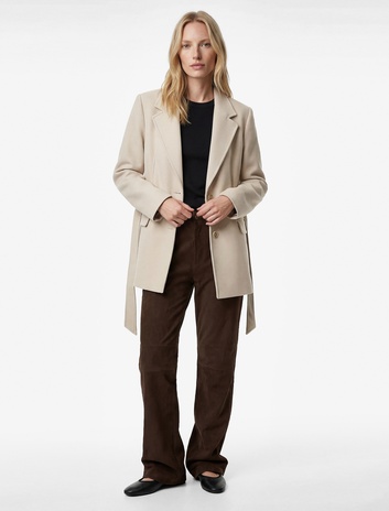 Kısa Kaban Kaşe Kemerli Cepli Kruvaze Uzun Kollu