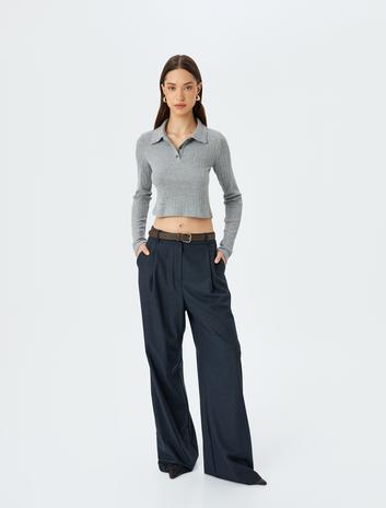 Straight Fit Pike Kumaş Cep Detaylı Rahat Kesim Beli Bağcıklı Pantolon