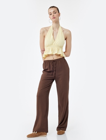 Aerobin Kumaş Geniş Paça Beli Bağcıklı Pantolon