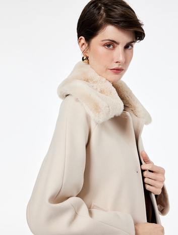 Uzun Kollu Cepli Düğmeli Çıkarılabilir Suni Kürk Yakalı Kaşe Kaban