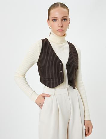 Crop Yelek Düğmeli Mini Cepli