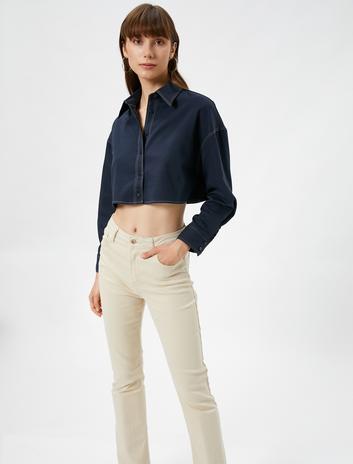 Uzun Kollu Gömlek Nervürlü Düğmeli Klasik Yaka