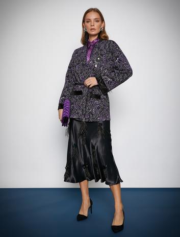 Melis Ağazat X Koton - İşlemeli Saten Midi Etek Sepete Ekle